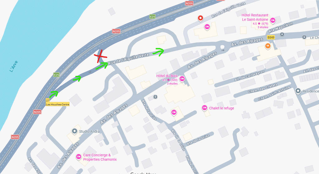 L’entrée dans les Houches à partir de la Route Blanche, en provenance de Passy, à la sortie 27 reste ouverte.